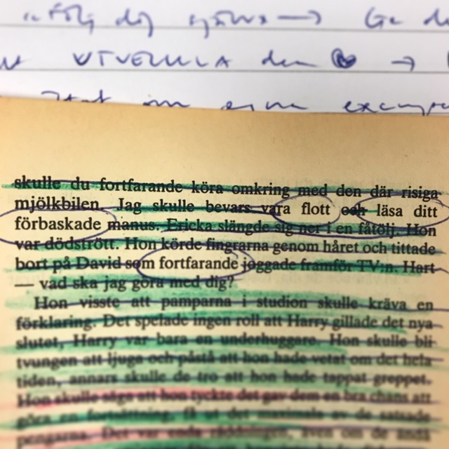 - Börja stryka. Arbeta intuitivt. Allt ska strykas, förutom de få ord du sparar. Arbeta dig ner till de valda orden.