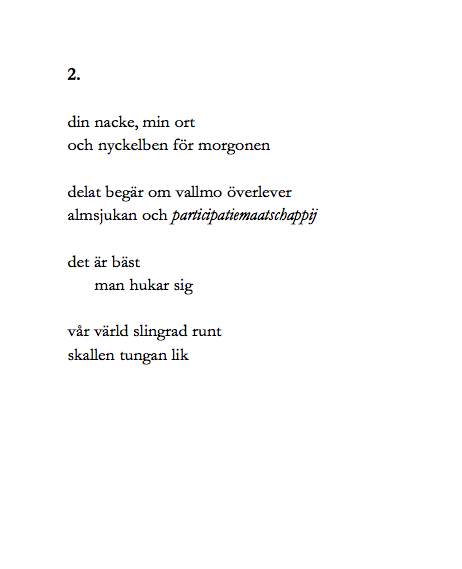 Den andra luckan är skriven tillsammans med någon jag inte känner alls, vilket är fint på ett särskilt sätt. Niels Vonberg såg – på Instagram – min inbjudan till att skriva en dikt med mig och hörde av sig. På den vägen var det; vi utbytte först 10 ord/bilder från vardera person innan vi började skriva oss fram mot en dikt.
