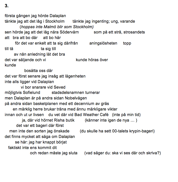 Dikten är skriven tillsammans med Johan Öster som bor vid Dalaplan med sambo och två barn. Han är master i litteraturvetenskap och jobbar nattskift på ett äldreboende i Västra Hamnen i Malmö.