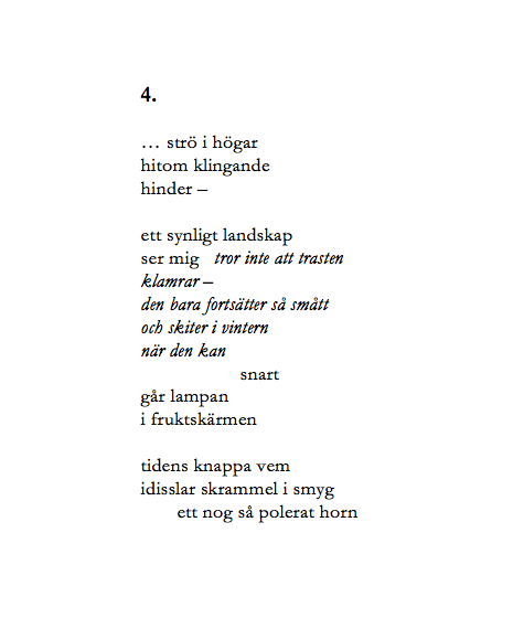 Dagens bonus får kallas en anmodan till läsning. Det senaste verket, Marginalia/Xterminalia, av Sveriges förmodligen bäste poet är formidabelt. Något annat som är formidabelt är Katarina Wikars kulturjournalistik och denna längre segerintervju – ”Med poesin som låtsaskompis” – är en ljudande materia som finns med Jönson.