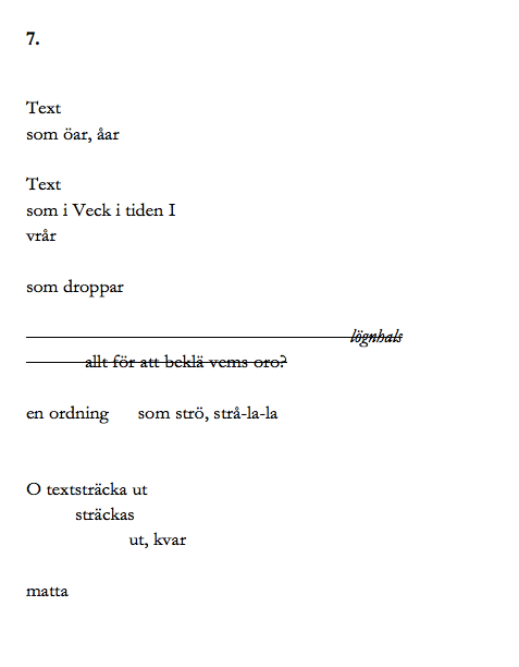 ”Återigen: Detta att ha texten som ett sätt att finnas till. Att inte sugas upp i allt det andra.