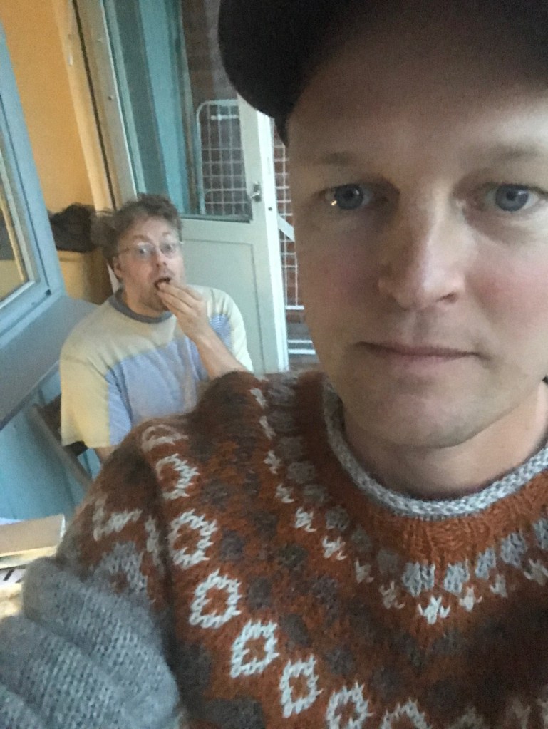 Säsongens andra program är inspelat på balkongen hemma hos David Torstensson i Malmö. Det var då den 12 augusti, David har T-shirt medan jag har en genser på fotona – kanske var det en något lynnig kväll. I munnen bulle. Som den vän av podden han hävdar sig vara, bjöd David på bullar enligt uppfattad kutym.