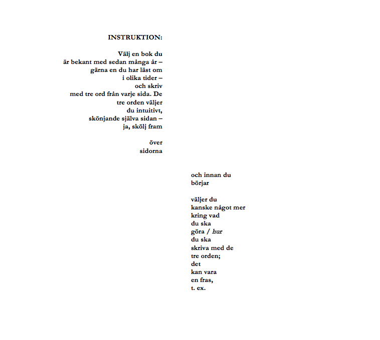 Det är kanske för mycket med två var. När vi läste När jag var snö av Ingela Strandberg blev det att vi samtalade länge om en enda dikt i boken. Kanske väljer vi nu två var för att väl framme i samtalet veta vilken vi vill samtala om. Hur som helst. Det var ljuvt att benämna två böcker jag älskar och att göra det här.