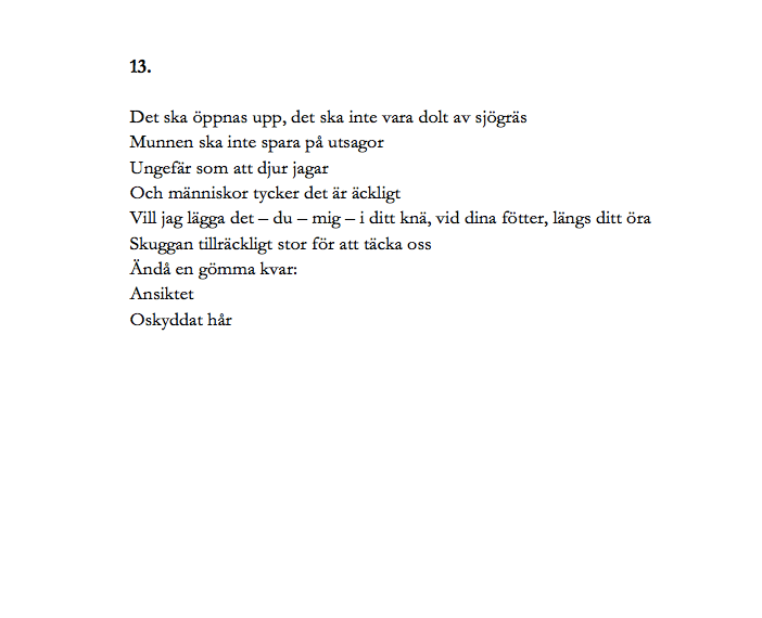 Månadens text är även inspirerad av Mathias Svalina och hans Writing Prompts, samt av min bilateralt stenkära vän, poeten Sara Hallström.